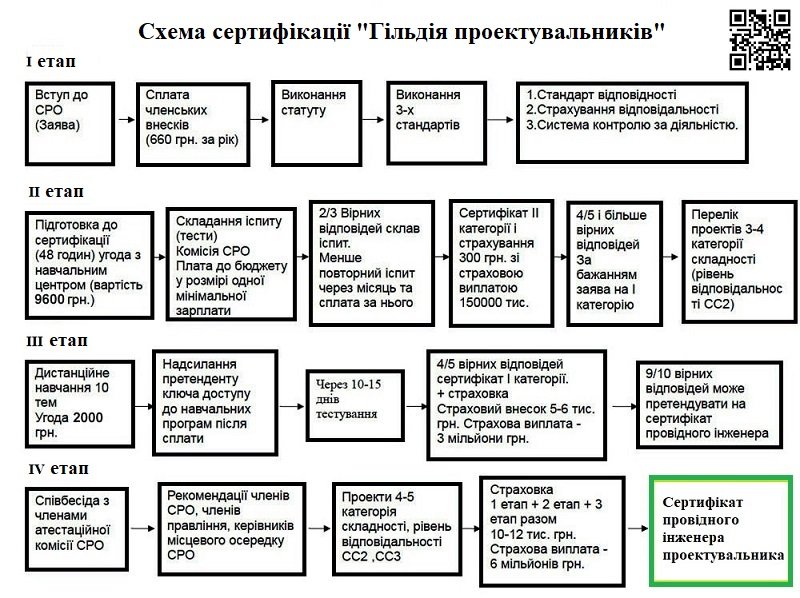 Кожен інженер - будівельник, який виконує проектні роботи зобов'язаний отримати сертифікат проектувальника (ГІП), сертифікат архітектора (ГАП).